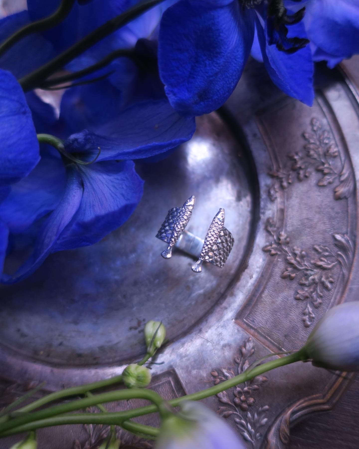 18KGPシルバー925の「deux poissons」リング。パリのアトリエで製作。