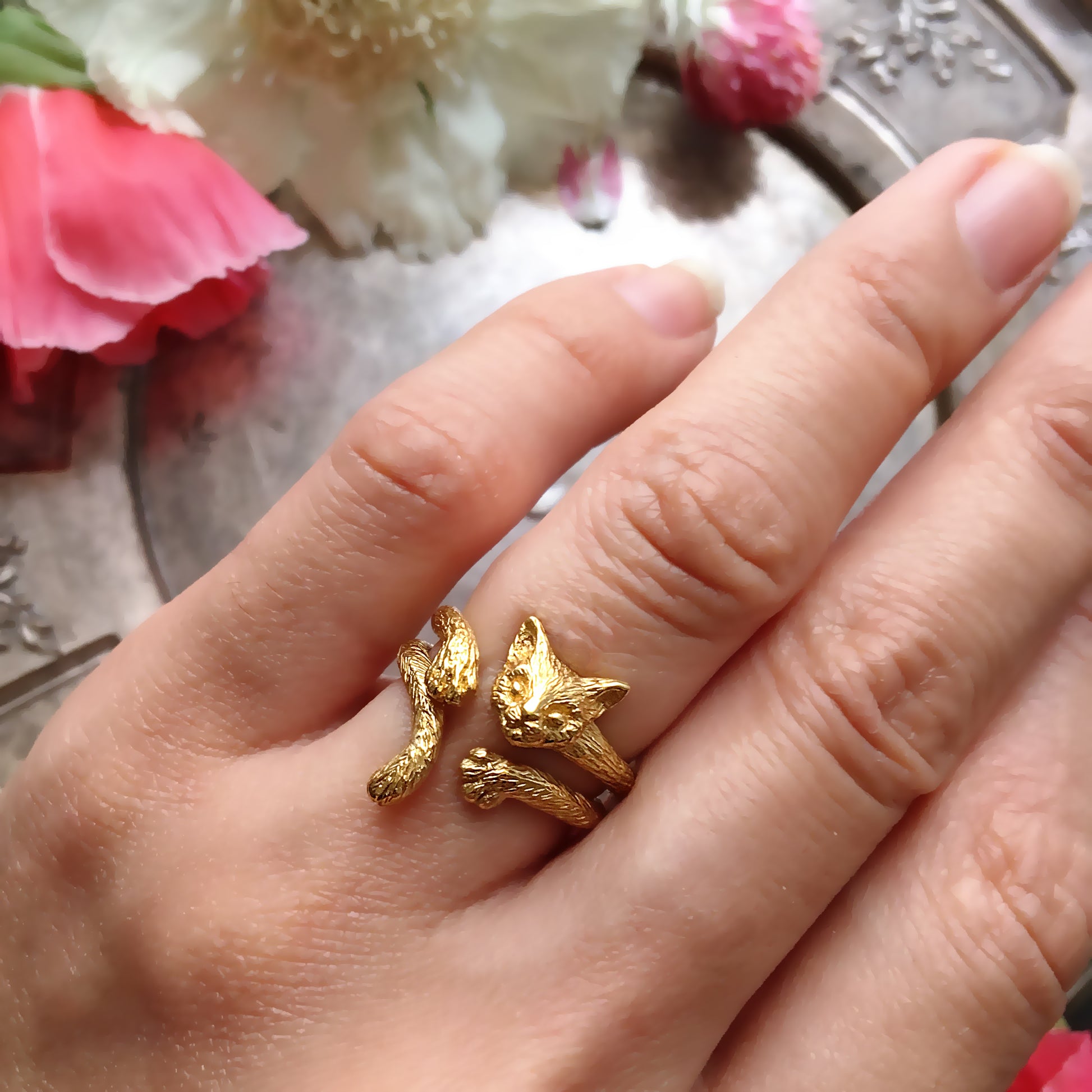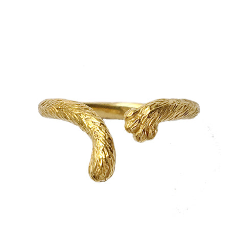 Cat tail & hand ring with amazing detail of paws in 18KGP silver925. made in Paris.