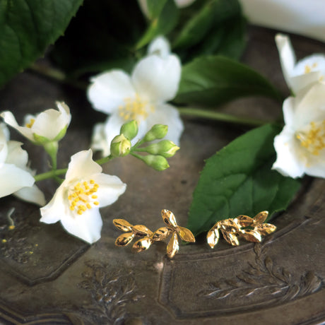Beautiful laurel leaves motif piercings inspired by the story of Apollo and Daphne in Ovid's Metamorphoses. in 18KGP silver925, made in Paris.