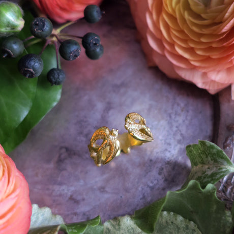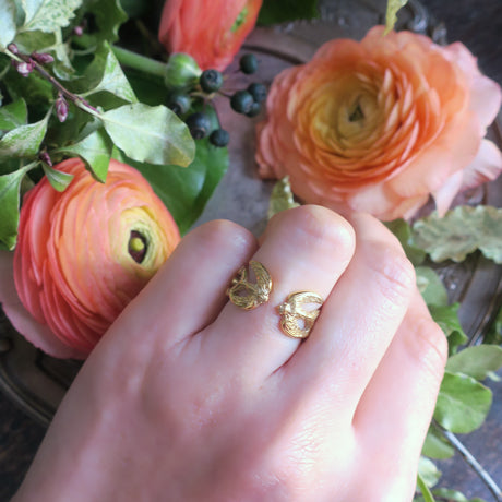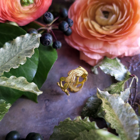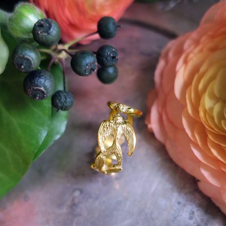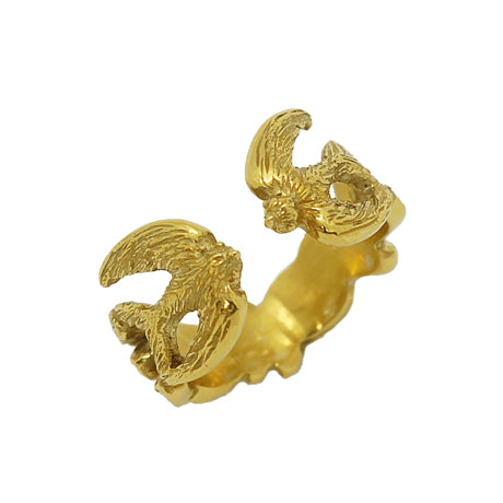 2 birds & feathers motif open ring in 18KGP silver925.