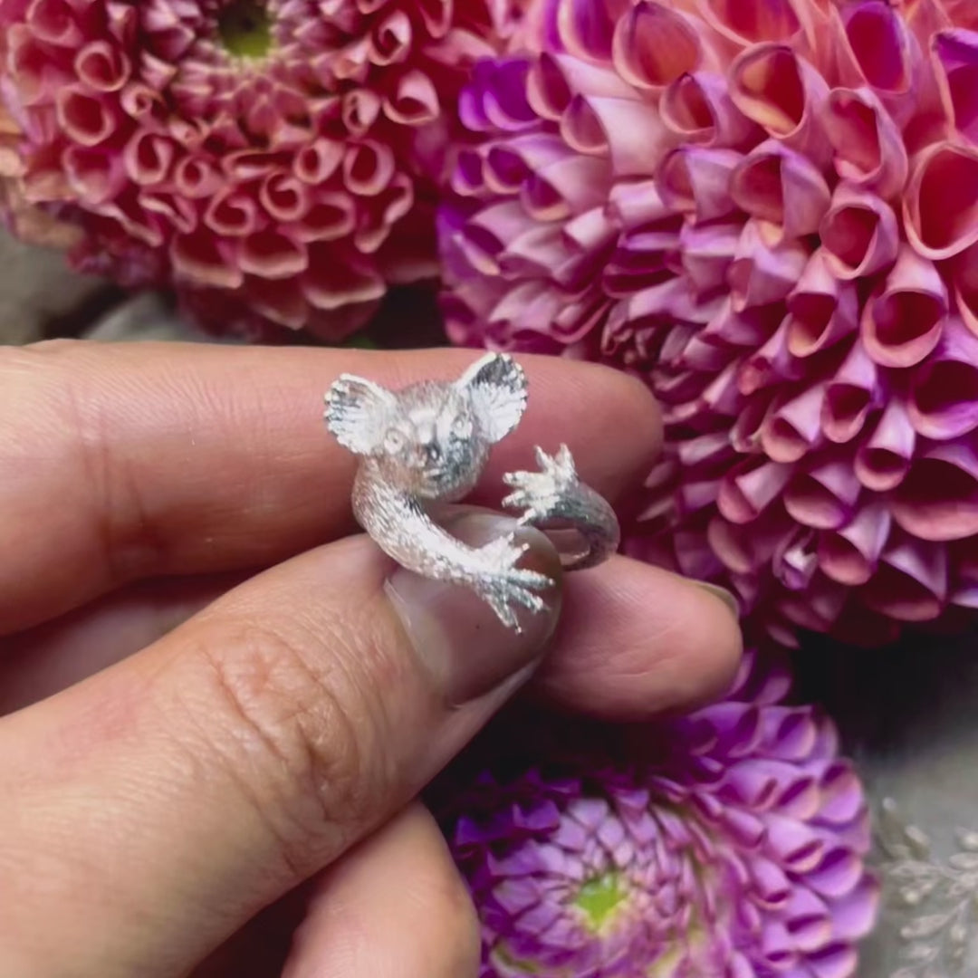 ぎゅっと指に抱きついてくるようなコアラのリング。