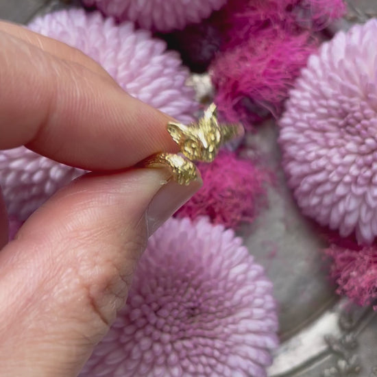 This exquisitely sculpted ring features a cat’s face and paw gracefully looping around your finger.
