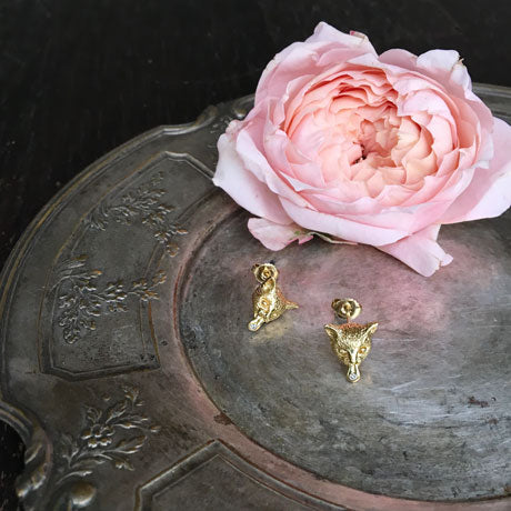 Sticking out tongue cat piercings in 18KGP silver925 with white sapphire version.