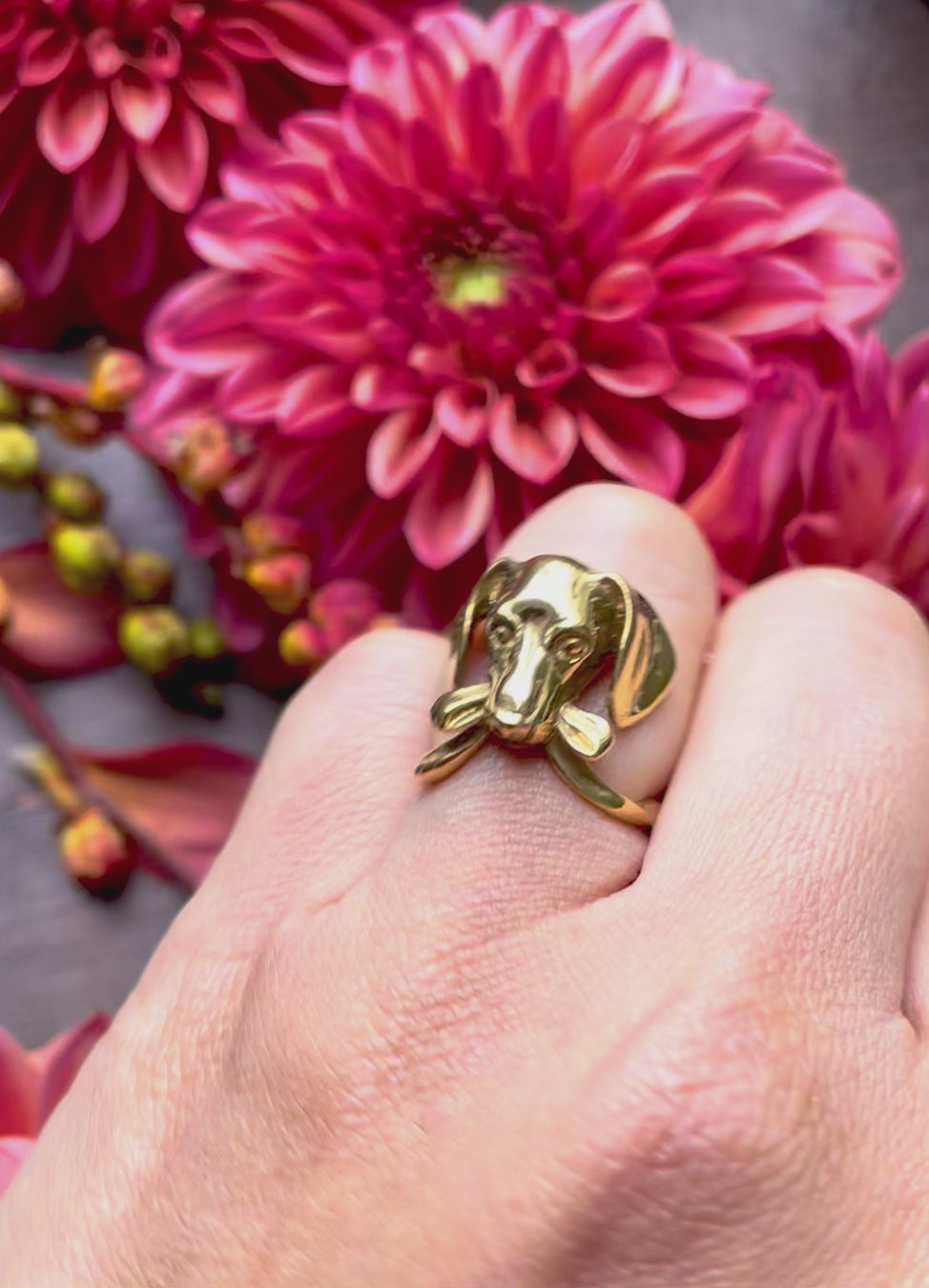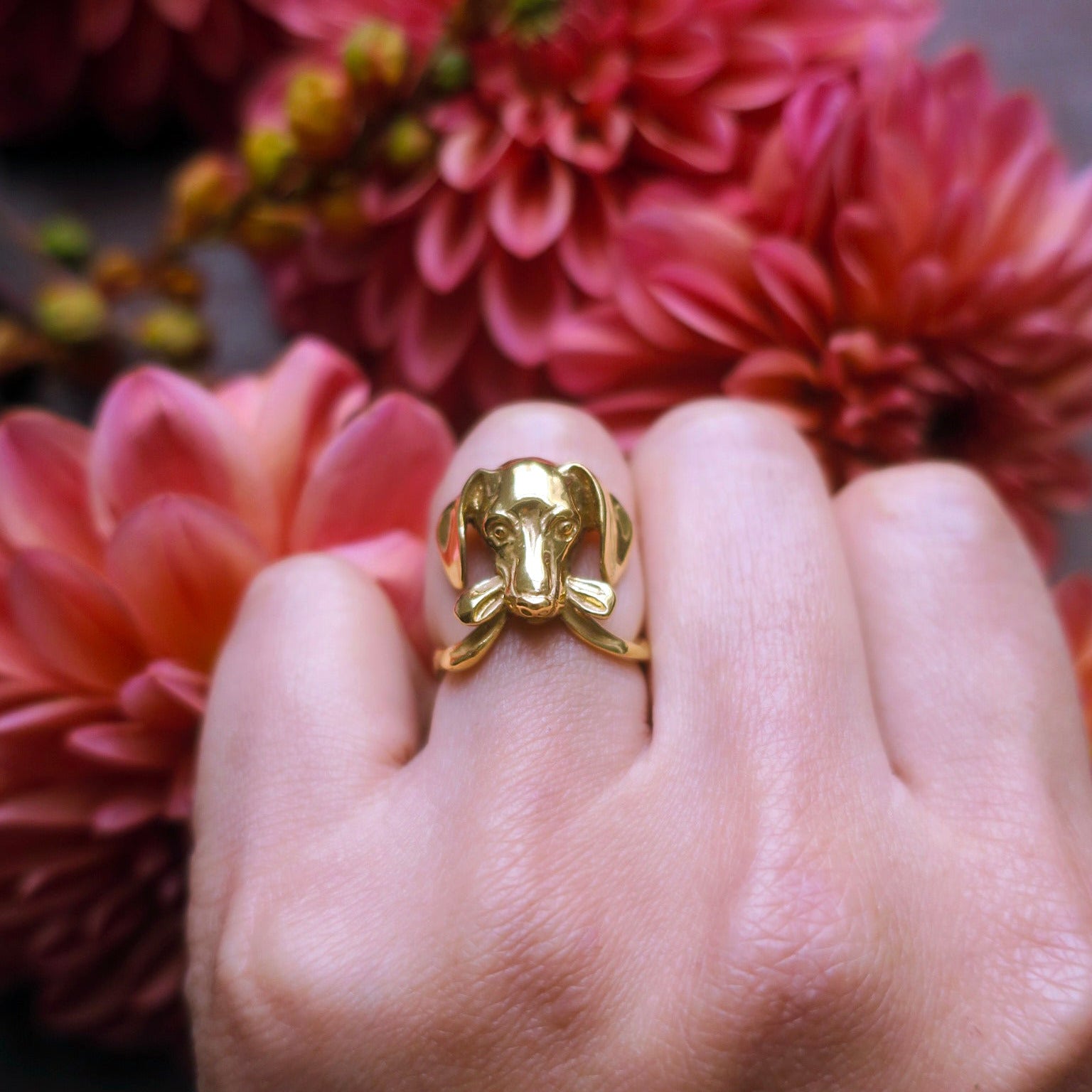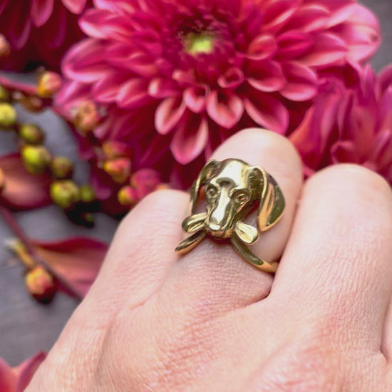 Handcrafted dachshund-inspired dog ring in 18K gold-plated sterling silver
