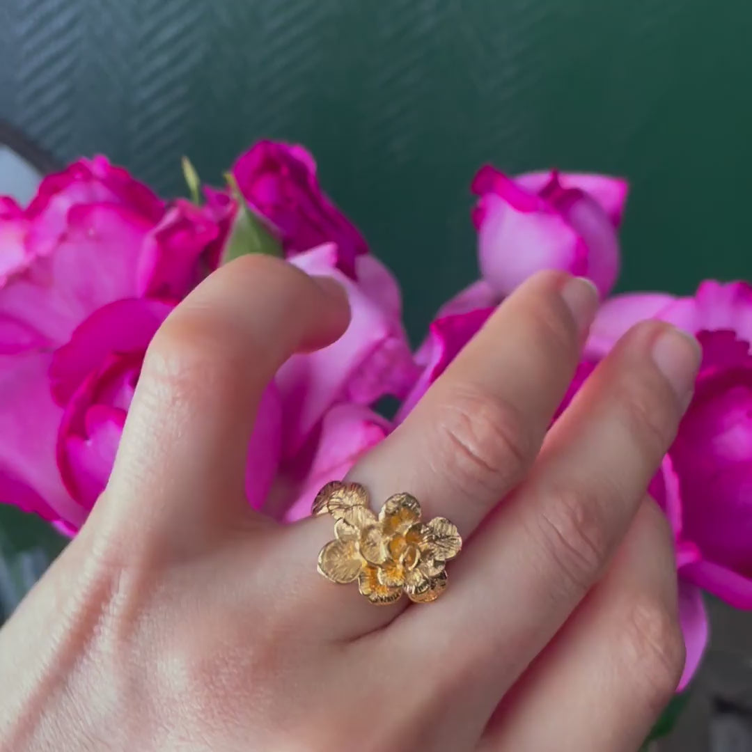 Vanity Rose Ring in hand-sculpted gold-plated