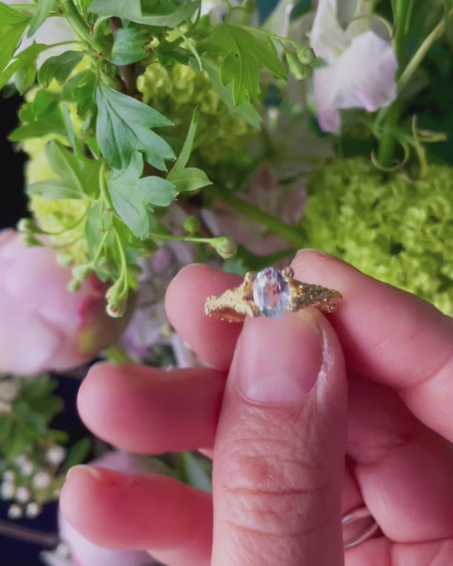 "lichen" ring in silver925 18KGP with a oval cut topaz .
