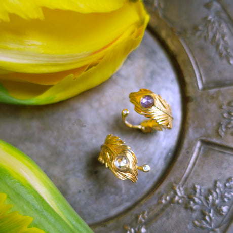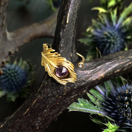 Peacock feather ring in silver925 18KGP with  rose cut amethyst & diamond ,  A slightly small model, please choose the 1size above your usual on.