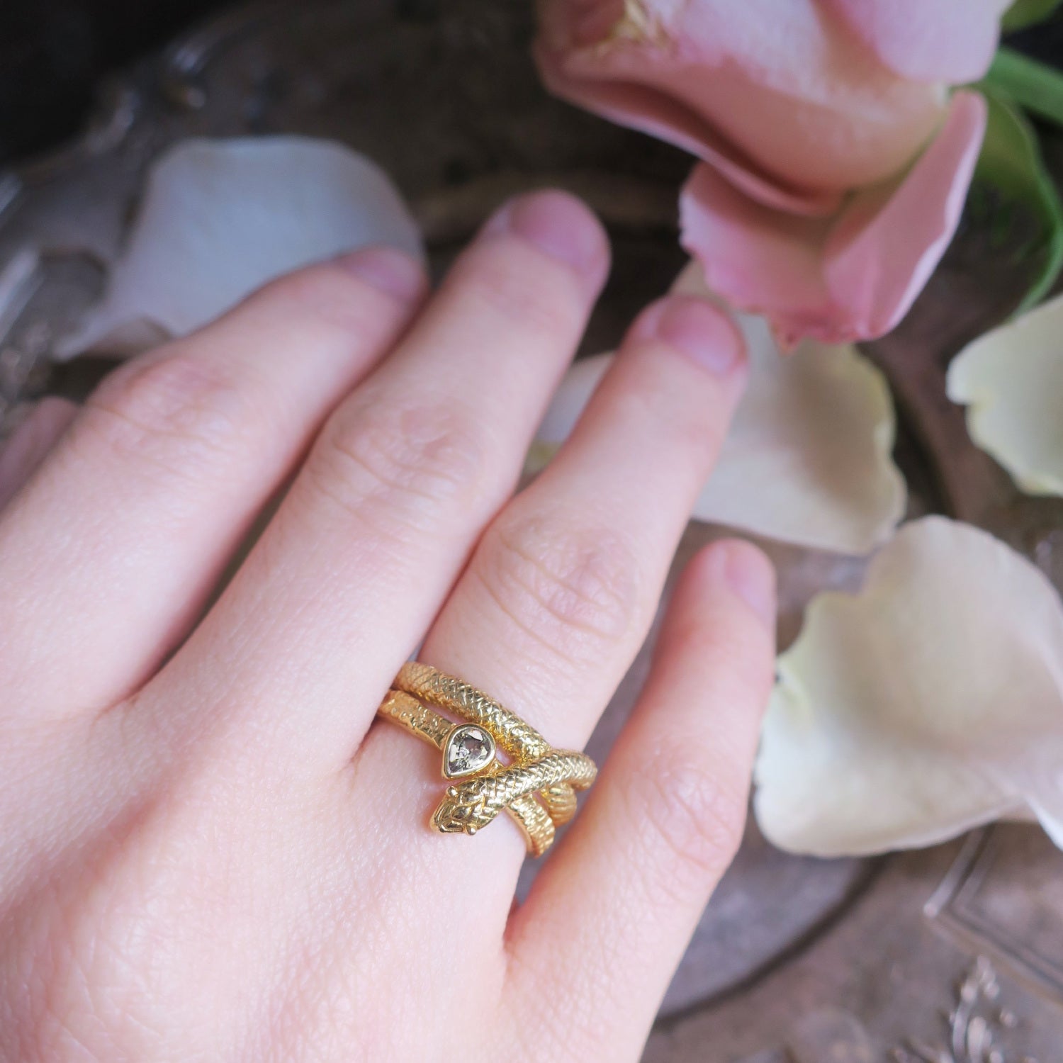 Because of its quiet, curling silhouette, some people affectionately refer to it as a “sneak ring,” a subtle twist on the classic snake ring.